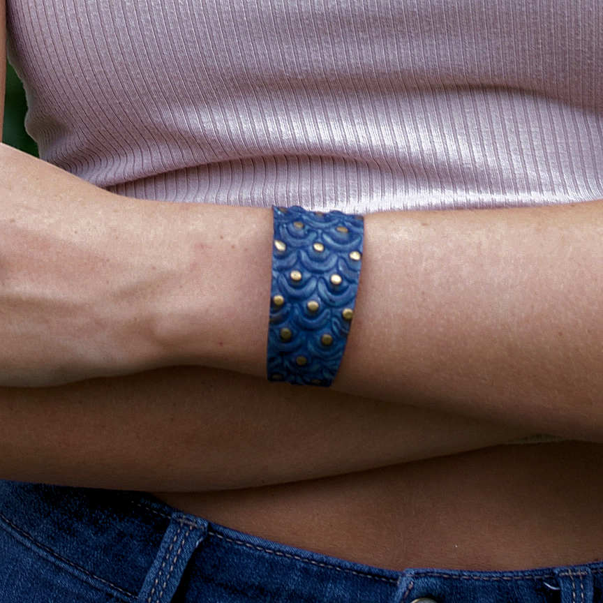 Blue Leaf Brass Patina Adjustable Cuff Bracelet The Handcrafted Brass Patina Cuff features a beautiful patina finish that enhances the...