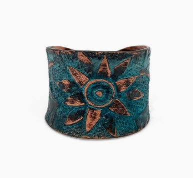 Rustic Blue Rising Sun Brass Patina Adjustable Cuff Bracelet Our Handcrafted Brass Patina Cuff features a beautiful patina finish that...