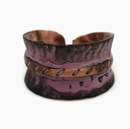Lilac Purple Double Spiral Copper Patina Adjustable Cuff Bracelet Materials: copper, patina, enamel Weight: 2 ounces Adjustable Fair Trade, Handmade,...