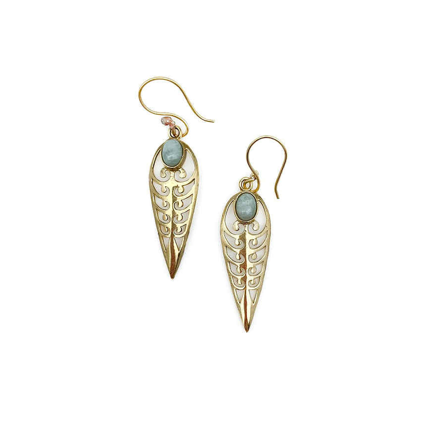 These earrings are handmade, featuring a fusion of mixed metals and Aventurine. Materials: Stainless steel base with brass, copper, and...