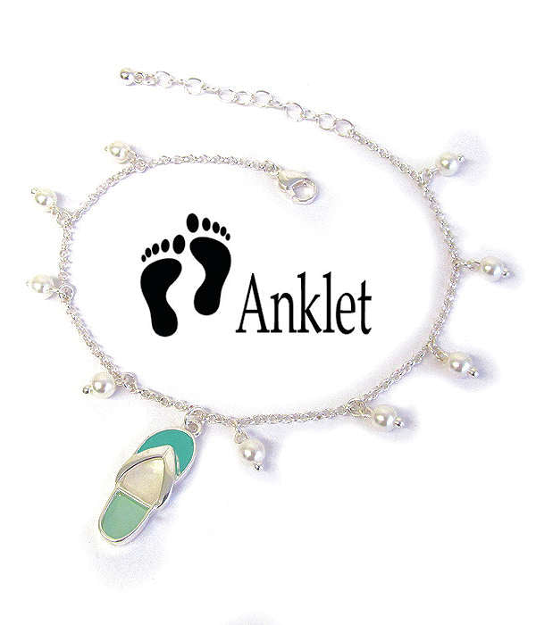 Sealife Theme Sea Glass Flip Flop and Faux Pearl Anklet