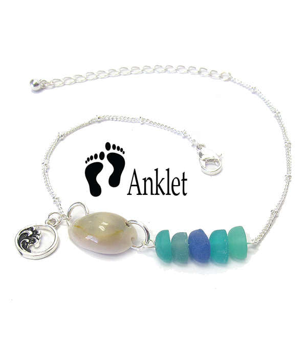 Celebrate Summer with these Blue and Sea Green, Sea  Ankle Bracelet with Shell and Dangling Wave Charm