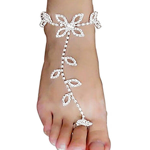 Silver Rhinestone Adjustable Ankle Bracelet Material:Â Silver-plated alloy, rhinestones Length:Â 9 inches with 1.5 inch extender Clasp:Â Lobster Claw