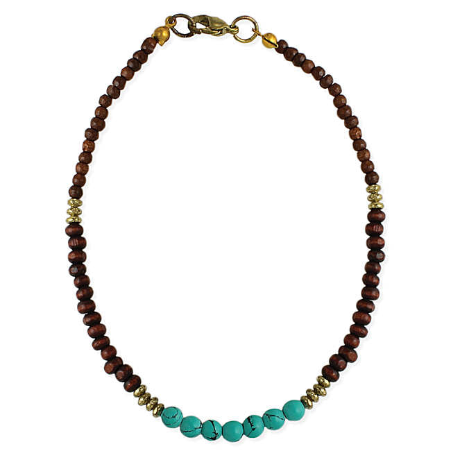 Southwest Summer Wood & Turquoise Beaded Ankle Bracelet For those barefoot walks in the woods look no further than our...