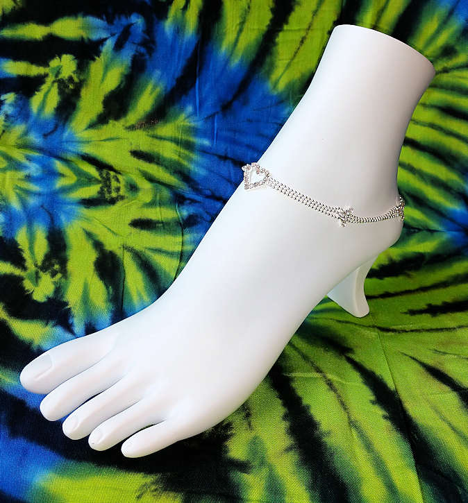 Shine this Summer with a Sprkly Rhinestone Heart and Arrows Ankle Bracelet Size:Â 8.25" with extension to 10.63"Â (approx) Materials:Â ...