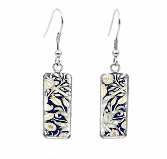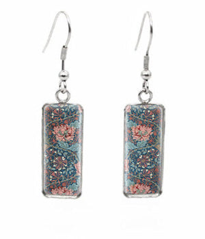 Frog, William Morris Woodland Art Print Earrings Materials: Recycled wood, .925 silver ear wires. Size: Measures approximately 2 1/2 inches...