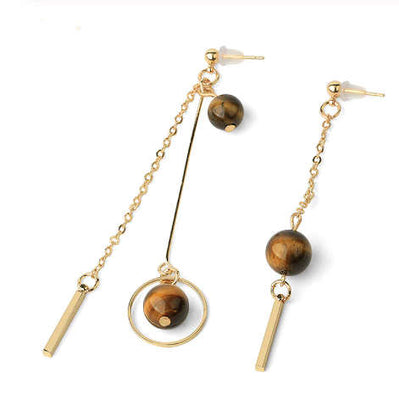 Aventurine or Tiger Eye Dangle Post Style Earrings - Asymmetrical