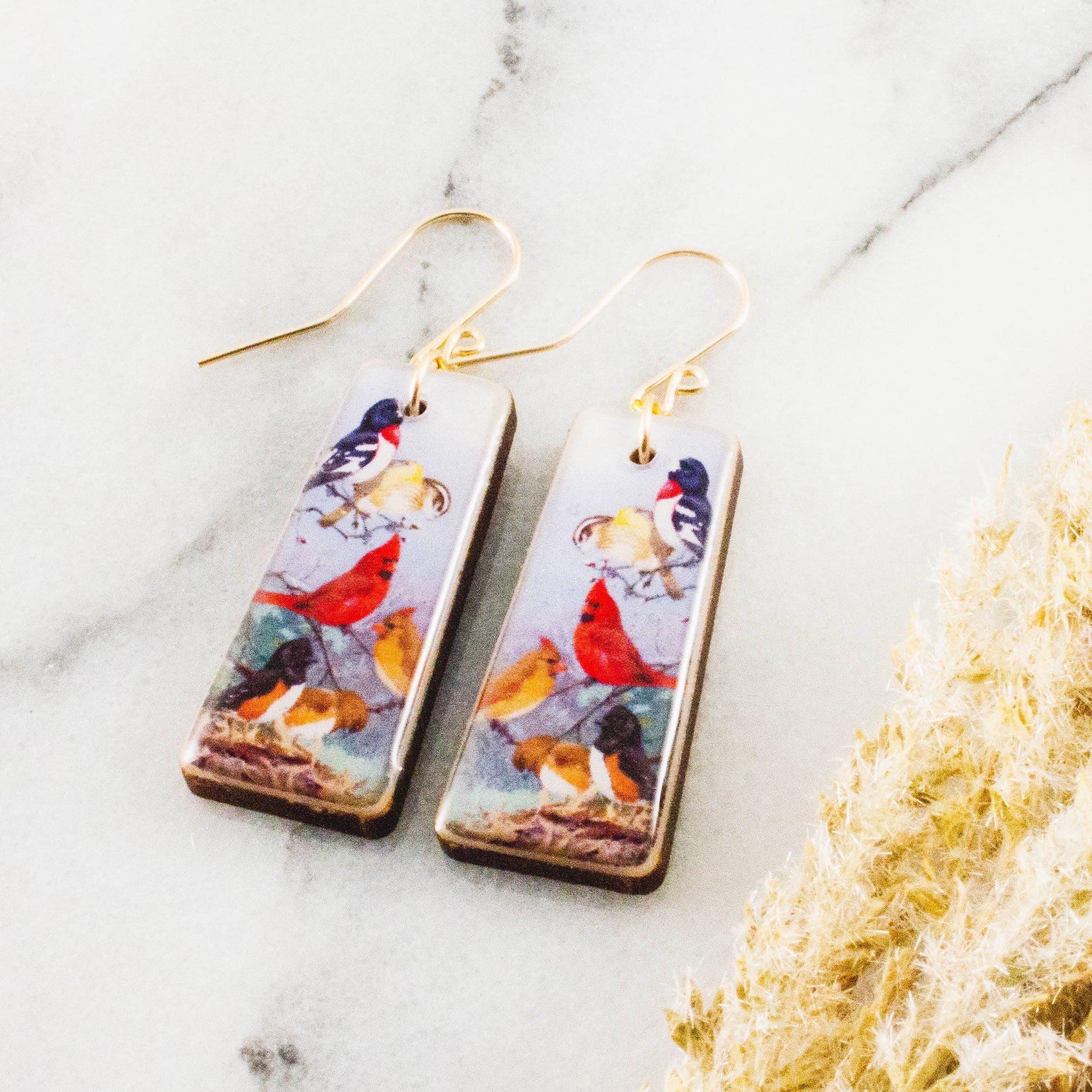 These earrings showcase a classic goldfinch design crafted from sustainably sourced materials, combining timeless elegance with eco-conscious craftsmanship. Materials: Made...