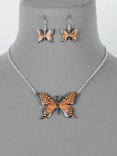 Butterfly Necklace and Earring Set - 3 Colors SILVER TONE CADMIUM SAFE NICKEL AND LEAD SAFE METAL ALLOY AND EPOXY...