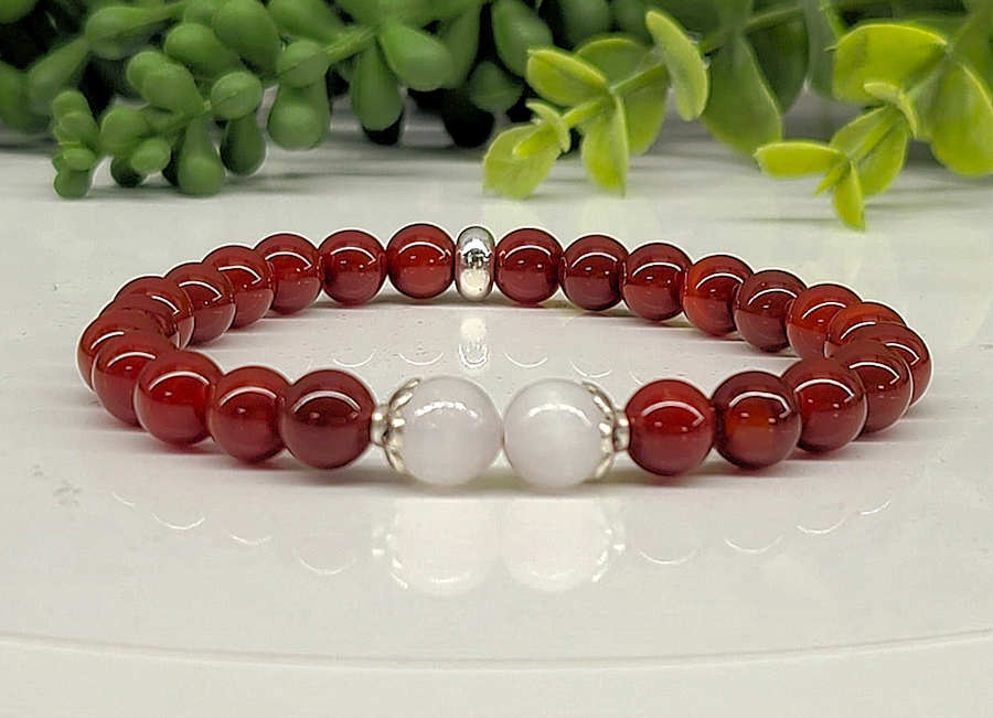 Memory wire bracelet featuring wire-wrapped Carnelian and Tiger's Eye gemstones. Materials: Carnelian 4mm beads, Faceted Tiger's Eye, tarnish-resistant gold-tone wire,...