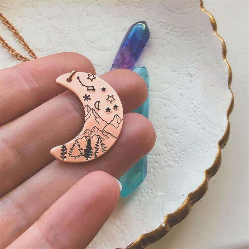 This intricate bronze mandala moon necklace is paired with a sleek, shining Sterling Silver chain. Chain:Â sterling silver 18" (approx.)...