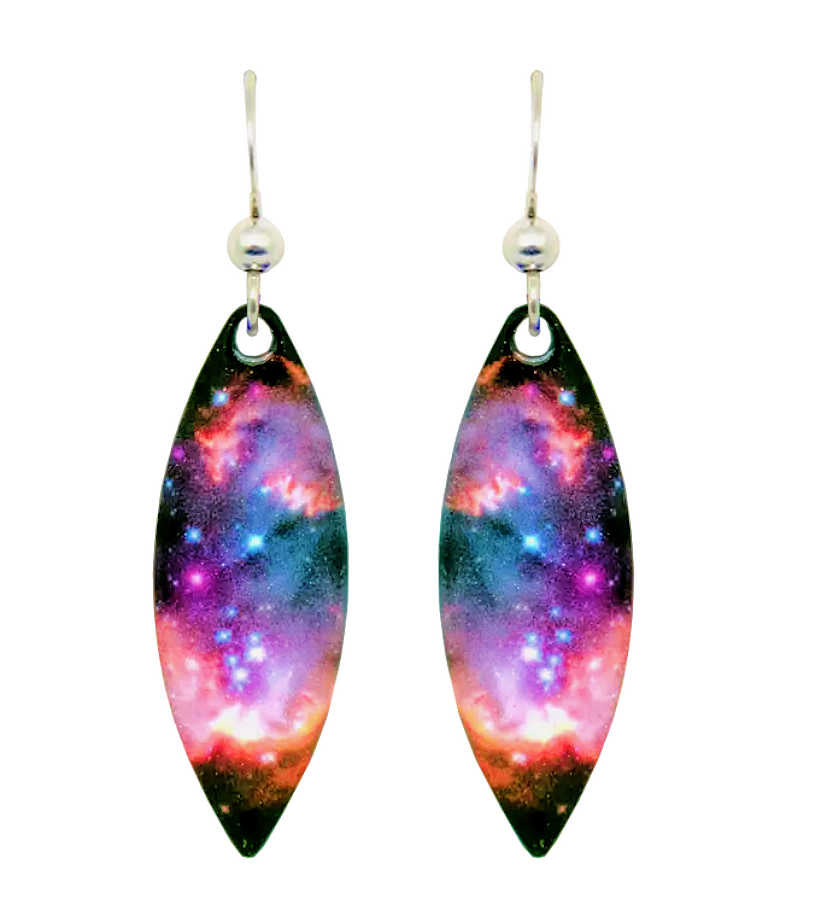 Magellanic Cloud Galaxy Earrings are lightweight, handmade in the USA and feature non-tarnishing sterling silver earwires.