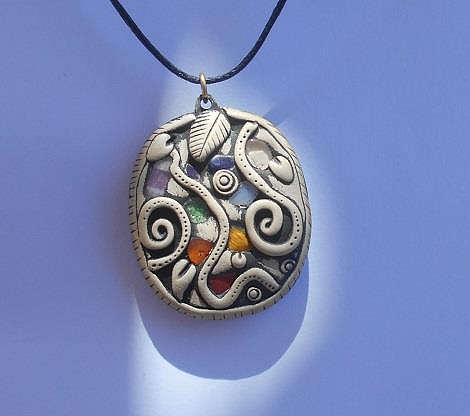 Handmade Chakra* Pendant with 7 Gemstones Embedded in the Clay