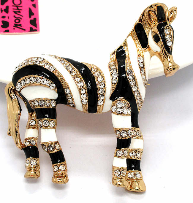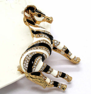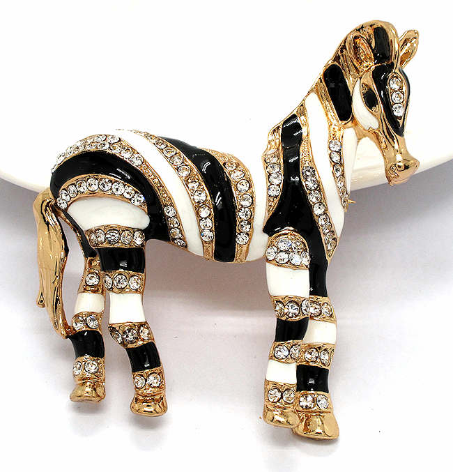 Enamel Crystal Zebra  Pendant, Animal Brooch Pin
