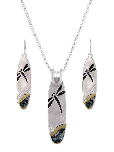 Anyone who Loves seeing Dragonflies in their Garden is Sure to Appreciate this Garden and Dragonfly Set of Necklace and...