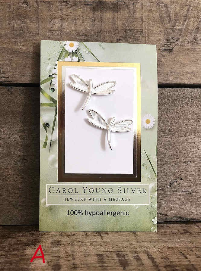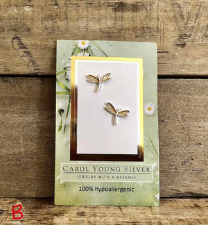 These Carded Dragonfly Earrings Stud Earrings in two styles, both come with a decorative card - Perfect for gift giving.