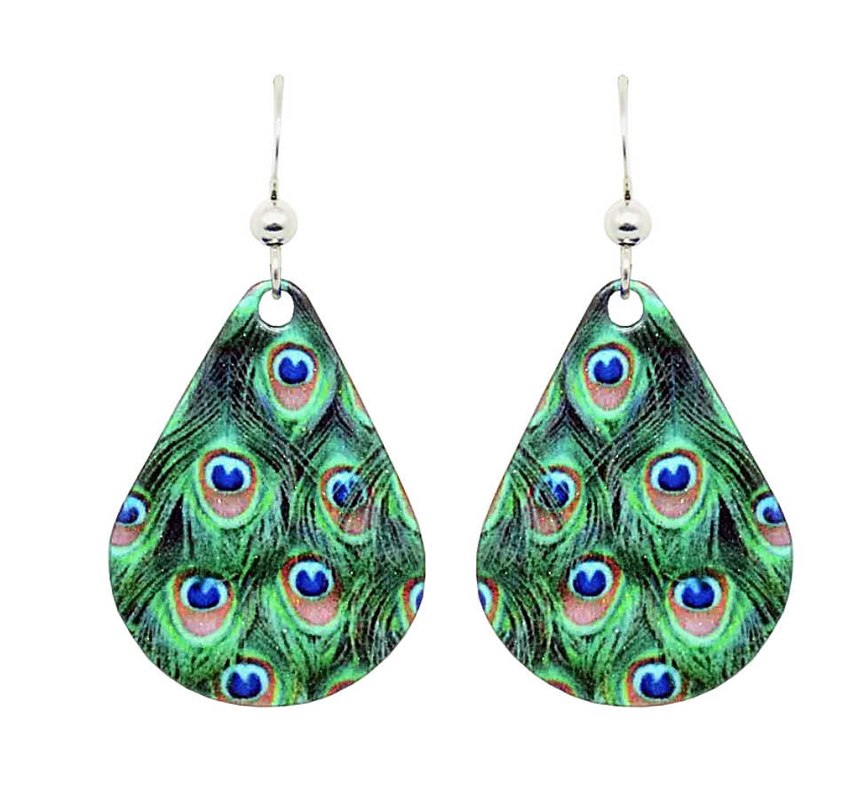 These genuine bright Peacock Feather Earrings are made in the USA with hypoallergenic and non-tarnishing silver ear wires. Teardrop-Shaped Earrings....
