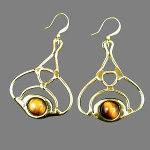 Aventurine or Tiger Eye Dangle Post Style Earrings - Asymmetrical Size:Â 3.15" and 3.54" (approx) Size of Large Bead: 10mm...
