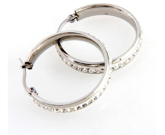 Rhinestone Crystal Silver Hoop Earrings Material: Silver, rhinestones Type:Â Hoop