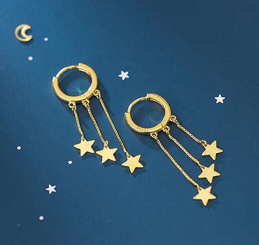 Sterling Silver Dangling Star Small Hoop Earrings Metal Stamp: 925,Sterling Lead, Nickel and Cadmium free Hoop .5" and longest dangling...