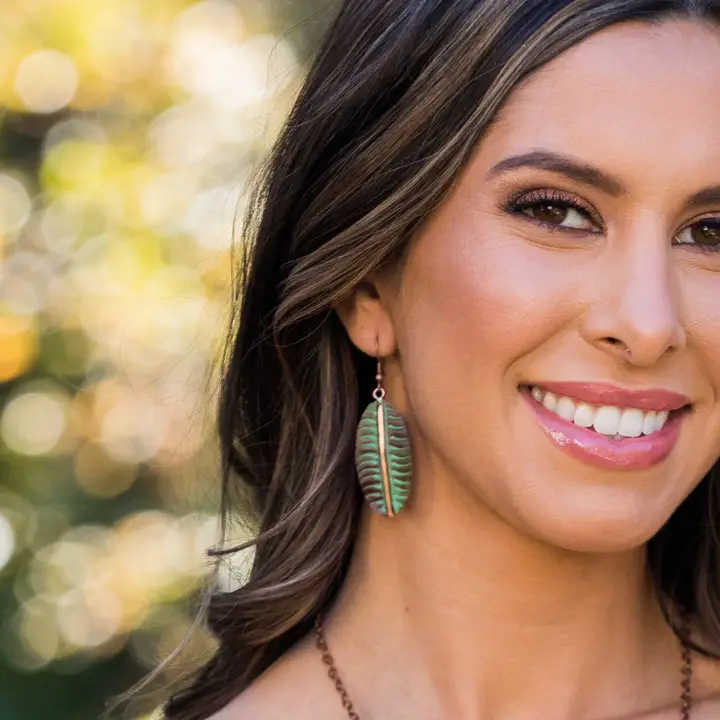 These earrings are handmade, featuring a fusion of mixed metals and Aventurine. Materials: Stainless steel base with brass, copper, and...