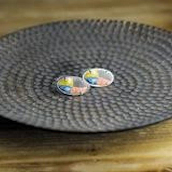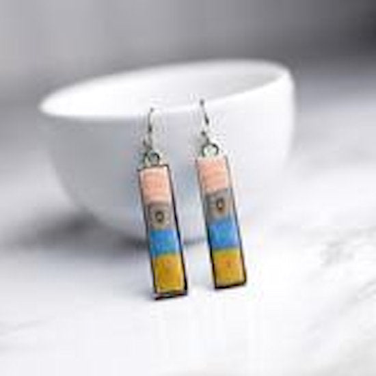 Jilzarah Reversible Frame Silver Dangle Barcelona Earrings Hand crafted, double-sided polymer clay inlay Fish Hook style with silver plated frame...