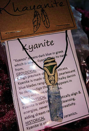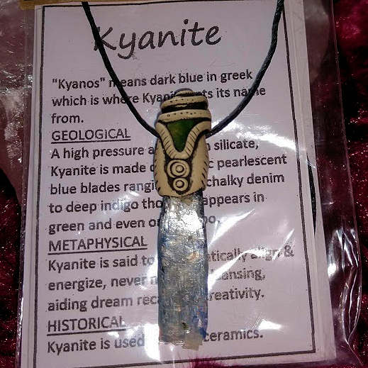 This 36" necklace is hand-beaded and knotted, featuring Blue Kyanite, Sodalite, and sparkling boreal blue faceted crystals. Size: Length 36"...