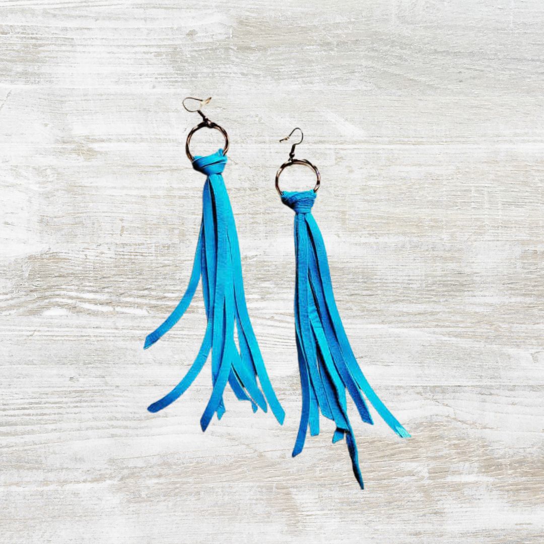 Genuine Leather Earrings, the perfect complement to your boho or western style. Handmade in the U.S.A. Size: Length: 3" X Width:...