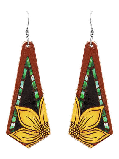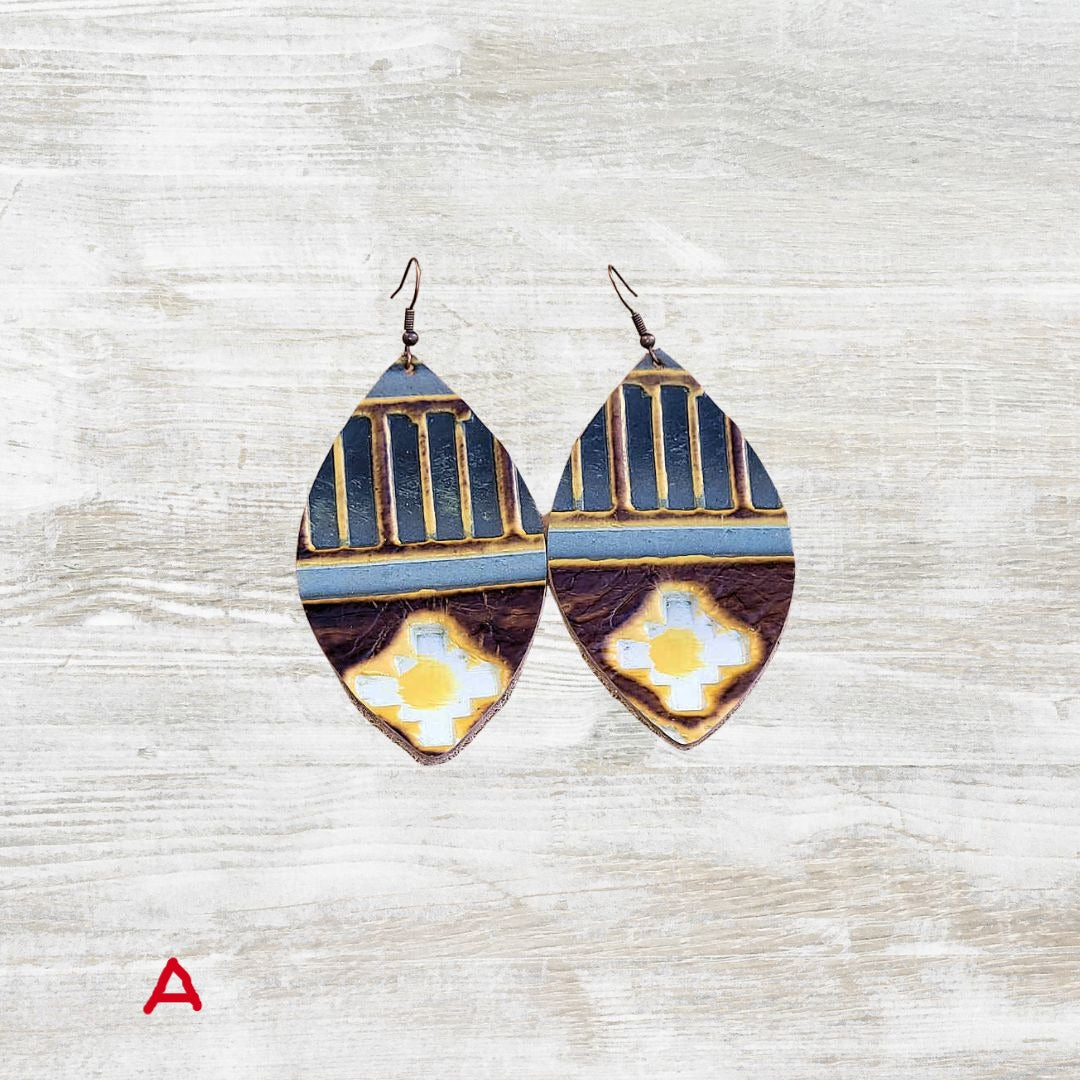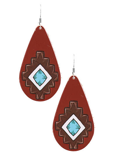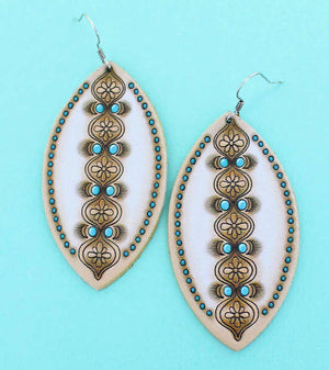 Handmade in the U.S.A. Turquoise Sahara Laredo Pattern Leather Earrings These Earrings are perfect complement to your boho or western style. Size:  Length:...