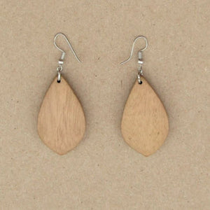 Leaf Shaped Light Natural Wood with Stainless Steel Fishhook Earrings