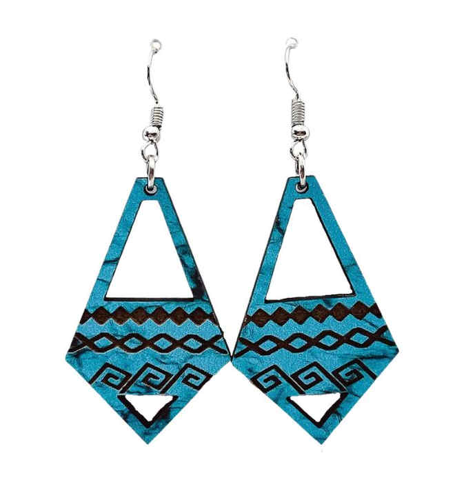 Turquoise Wooden Earrings Western