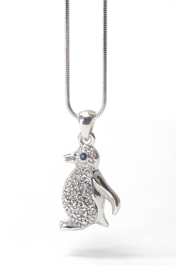 White Gold Plated Crystal Penguin Pendant Necklace Pendant Size: 1" (approx.) Chain: 18" (approx.) Materials: White Gold Plated Zinc Alloy,...