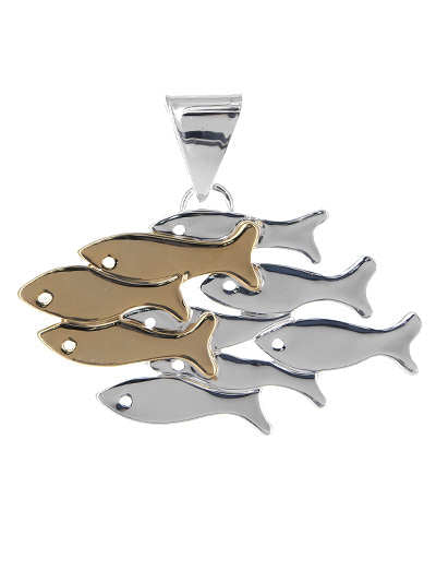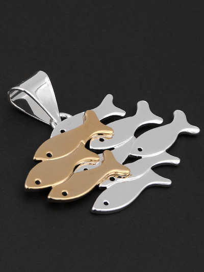 Silver and Gold Tone Pendant of a School of Fish Materials: Zinc Alloy (Nickle and Lead Compliant) Pendant Size: 2.7" ...