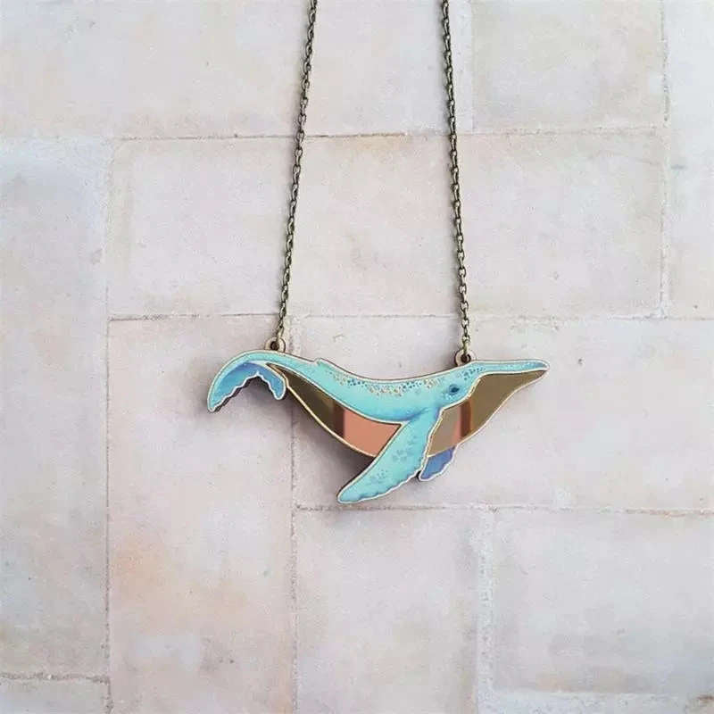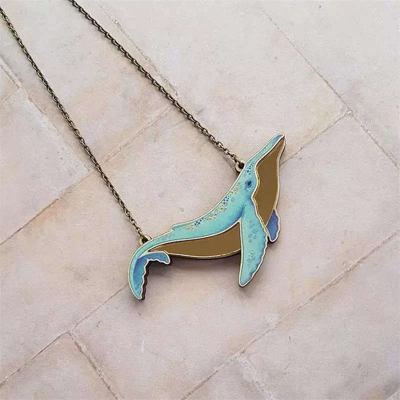Dive into style with these earrings showcasing a whale swimming through rich ocean blues, all crafted from eco-friendly materials. Materials:...