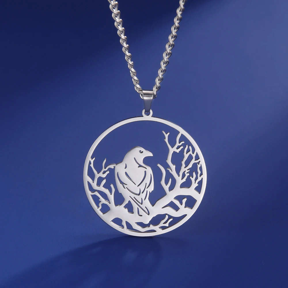 This Raven's Head Necklace is crafted from silver-plated zinc alloy and features a Raven with an open bill clutching a...