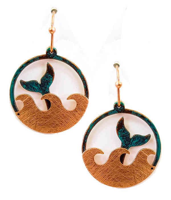 Dolphin and Mermaid Scale Earrings Silver Tone with Blue Mermaid Scales Size: 1/2 x 1 1/4 inches (approx) Metal Alloy...