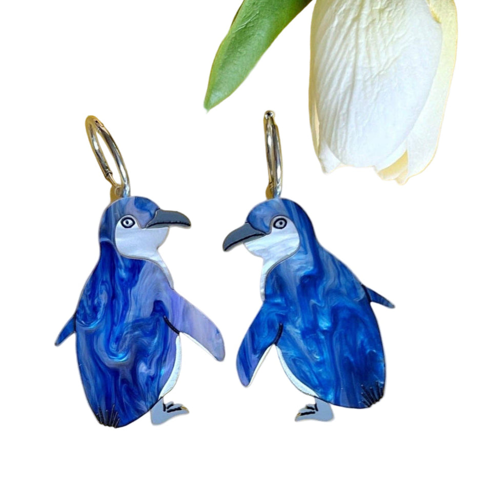 Crafted by hand from acrylic, these whimsical Little Blue Penguin (also known as the "Fairy Penguin") Earrings are lightweight and hypoallergenic.