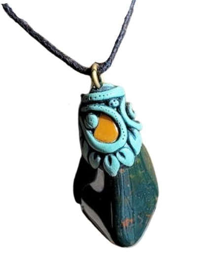 Hand Made Clay Carved Necklace with Sodalite - One of a Kind! Sodalite stone in a hand designed clay pendant Approximately...