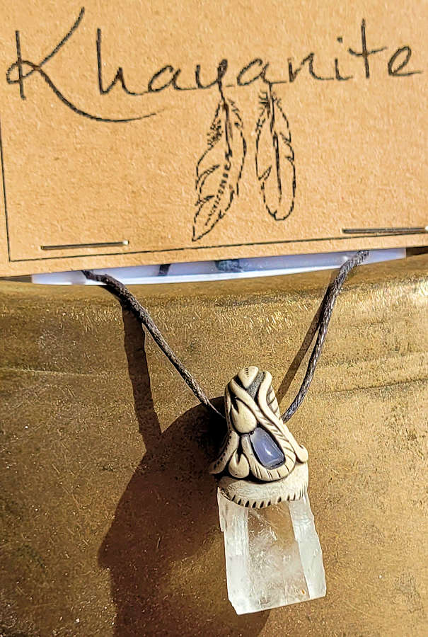 Hand Made Clay Carved Necklace with Sodalite - One of a Kind! Sodalite stone in a hand designed clay pendant Approximately...