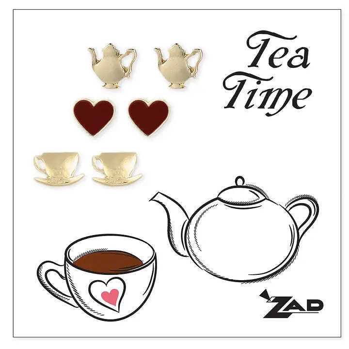 This trio of earrings is perfect for any tea lover, with a tea cup, teapot, and heart design. They add...