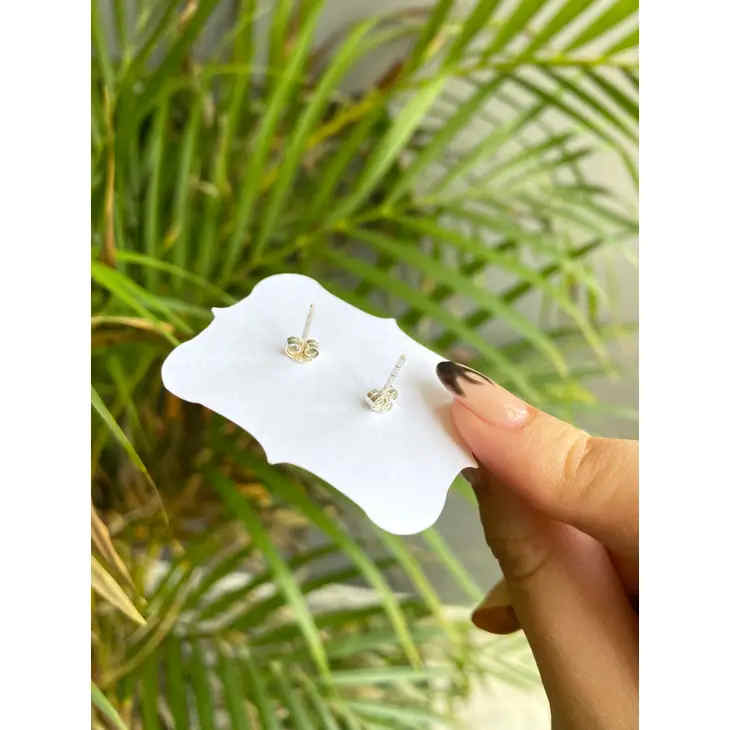 Delicate sterling silver stud earrings shaped like fluffy sheep, inspired by nature’s charm. Materials: Sterling Silver and Epoxy Size: .35"...