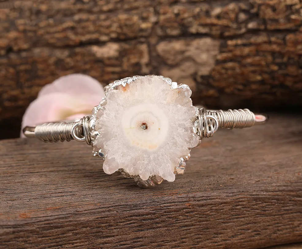 Elevate your vibe with this White Solar Quartz Eye and Amethyst pendant, known for cleansing and revitalizing your body, mind,...