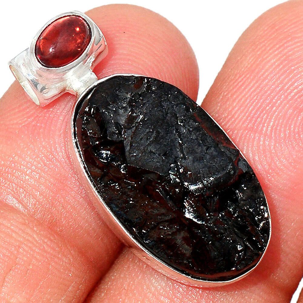 Elite Shungite & Garnet Silver Pendant