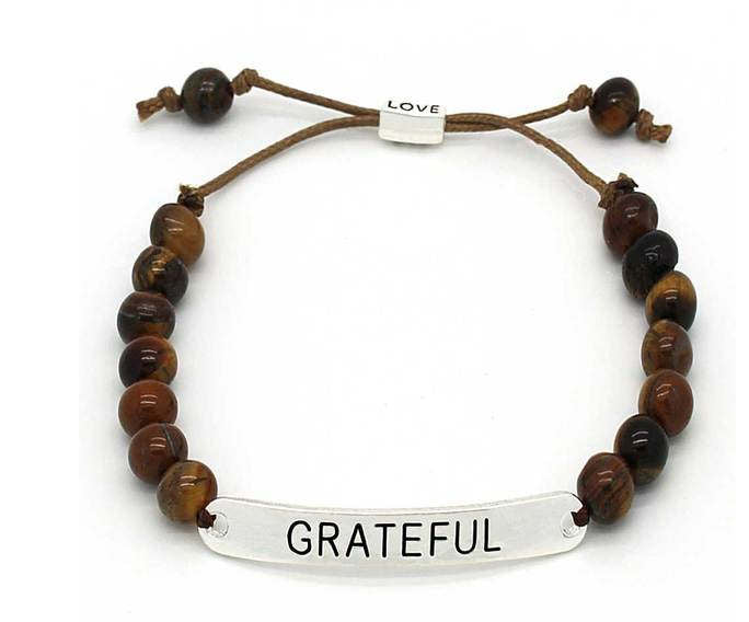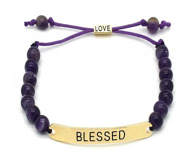 Beauty, Semi-precious Gemstones and a Positive Message on a Bracelet Tiger Eye (Grateful) or Amethyst (Blessed) or Sodalite (Amazing) or On brown...