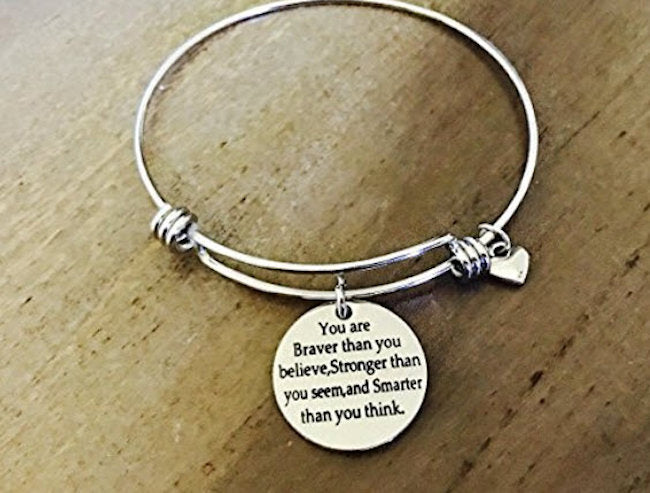 Stainless Steel You Are Braver Expandable Bracelet Material:Â Stainless Steel Size:Â 6-8 Inches "You are Braver than you Believe, Stronger...