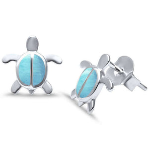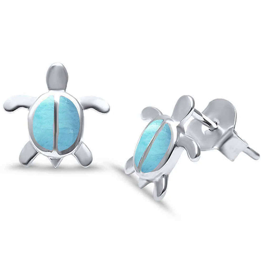 Turtle Post Earrings with Larimar Shell Set in .925 Sterling Silver Size: 10mm converting to 0.393701" (measurements are approximate) Materials:  Natural Larimar...