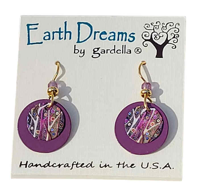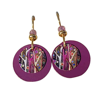 Hand Painted Abstract Wistera Earrings on colored brass back with Czech glass bead