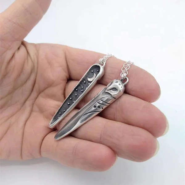 Creative Pendant Necklace  - One Side is a Barn Owl Representation and the other is a lighter Etched Moon and Stars