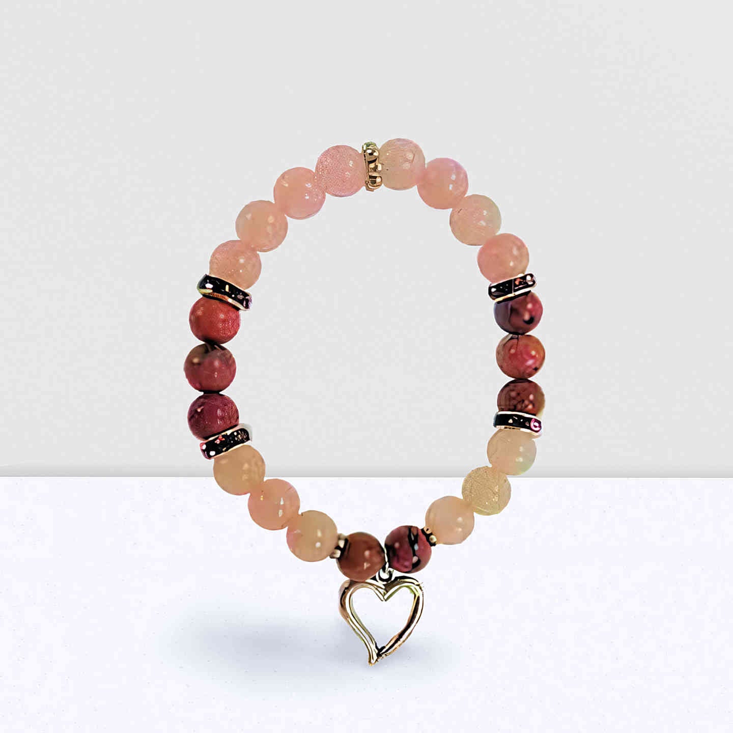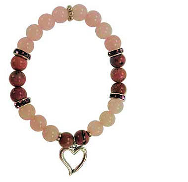 Bracelet - Rose Quartz and Rhodonite with Heart