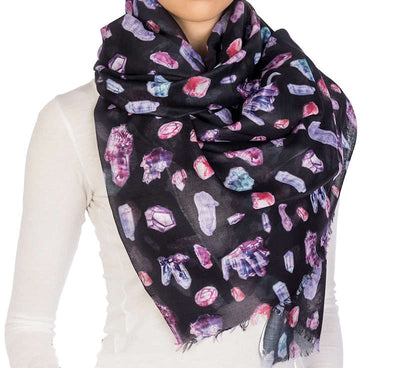 Surround Yourself with This Black Scarf with Crystals of various Shapes and Sized Printed on it.